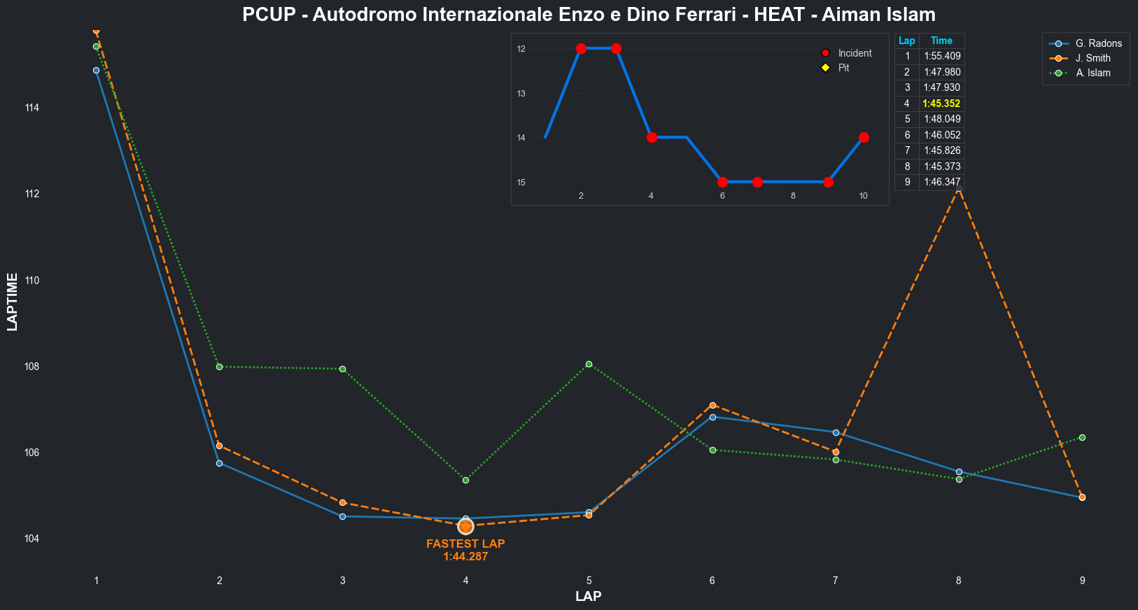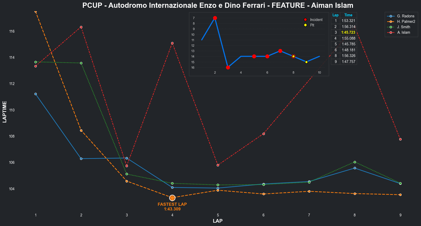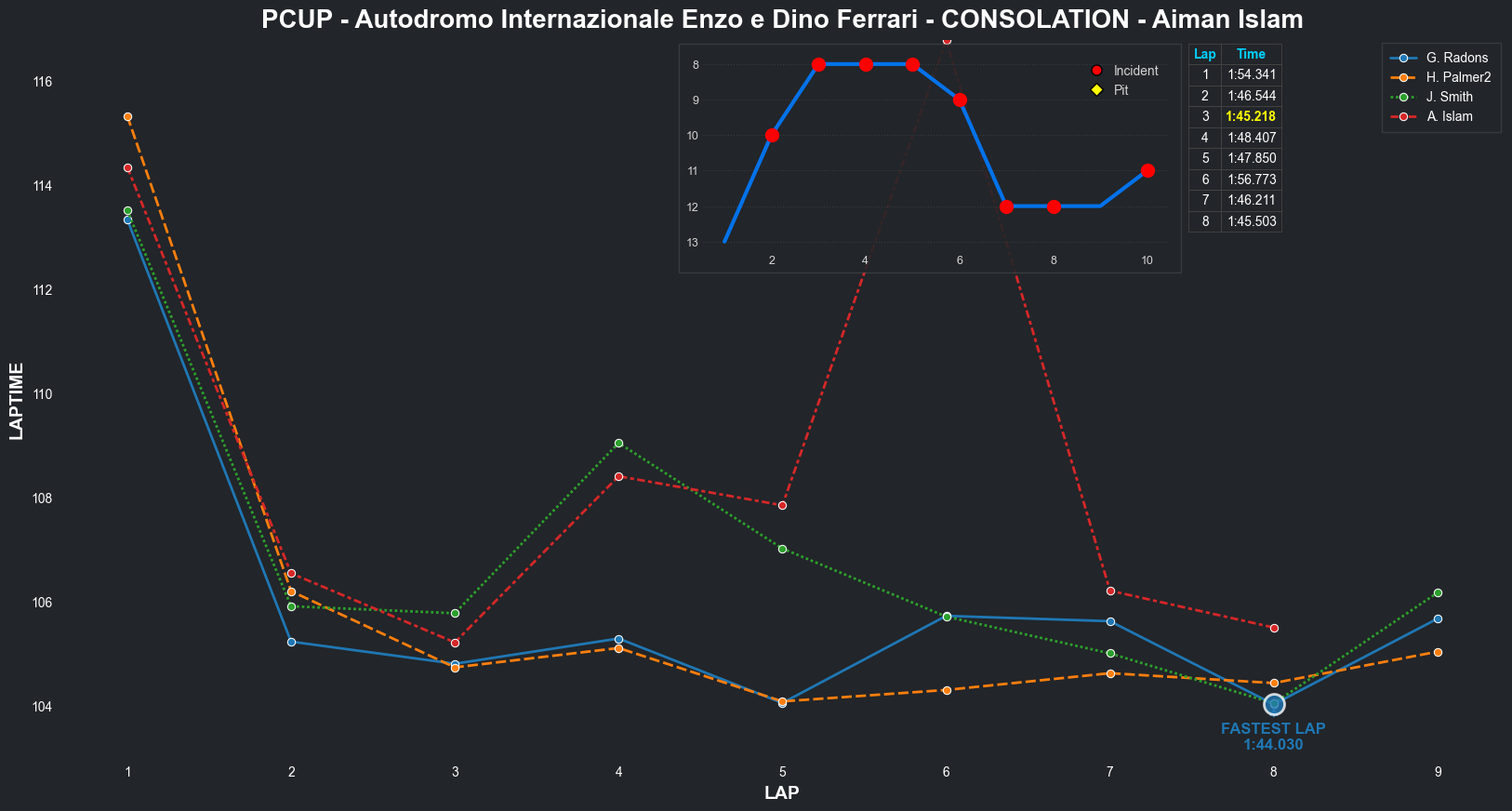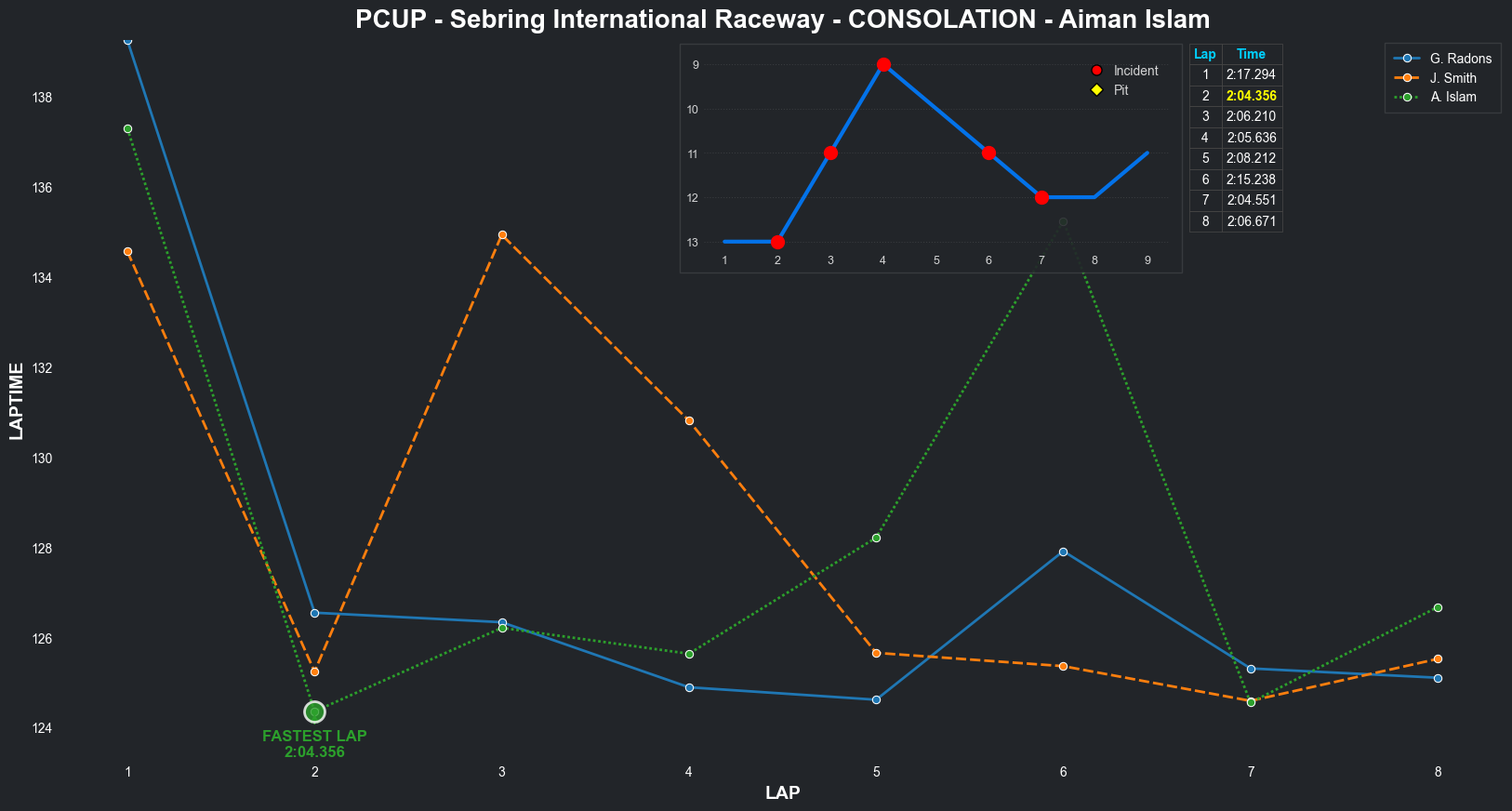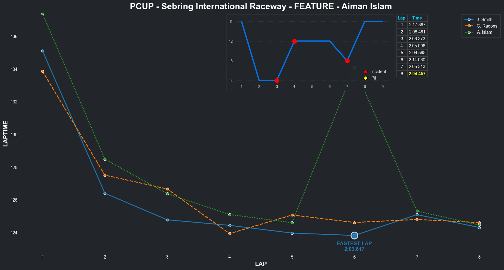 | Aiman Islam | 15 | 2 | 2:10.5480 | 2:03.8161 | 2:03.2879 | 2:03.0311 | 2:01.9406 | 2:17.0808 | 2:09.1264 | 2:14.2116 | 0 | 8 |