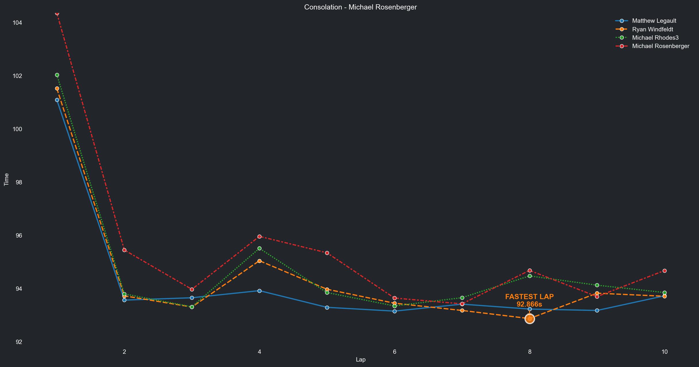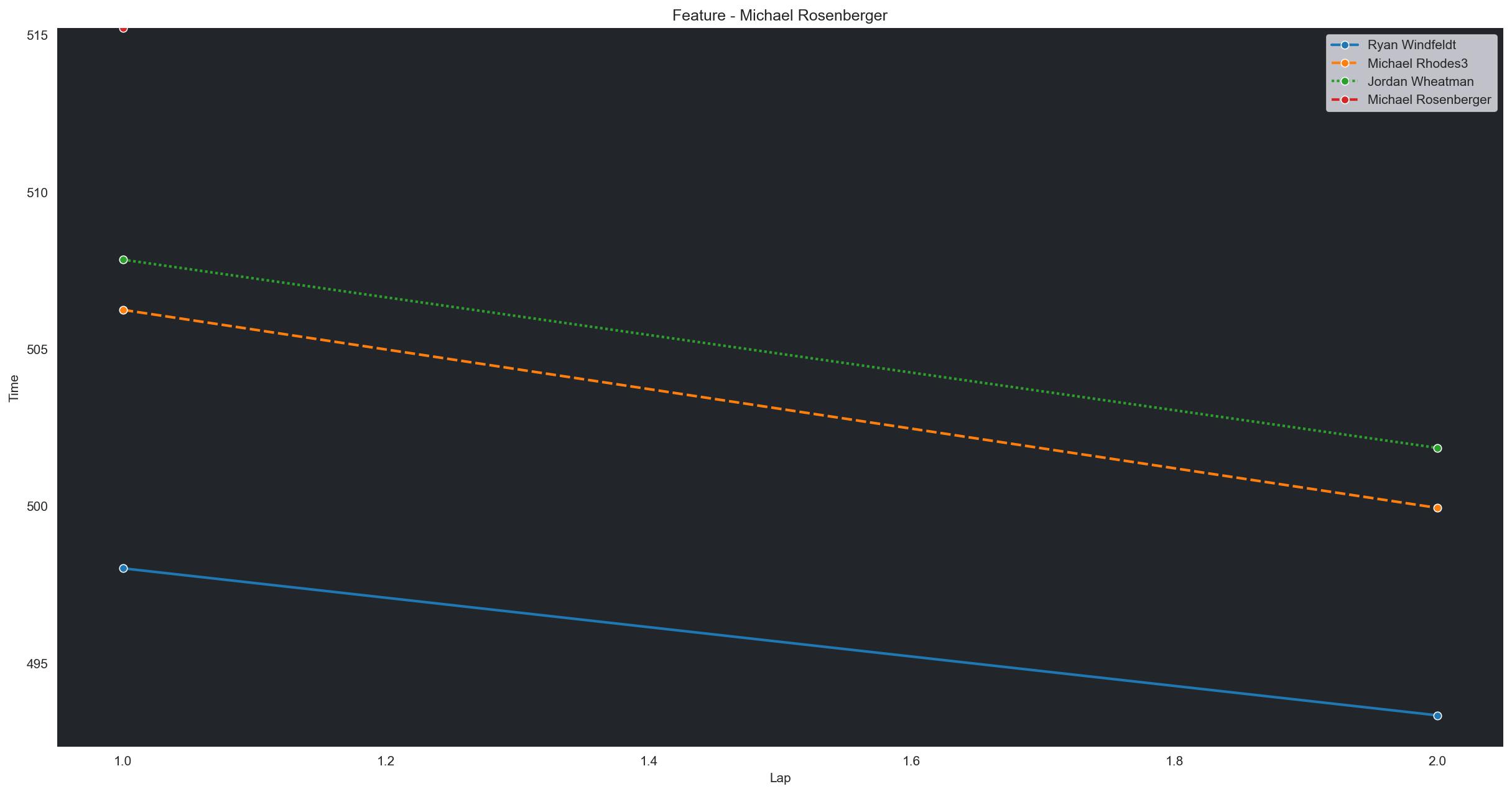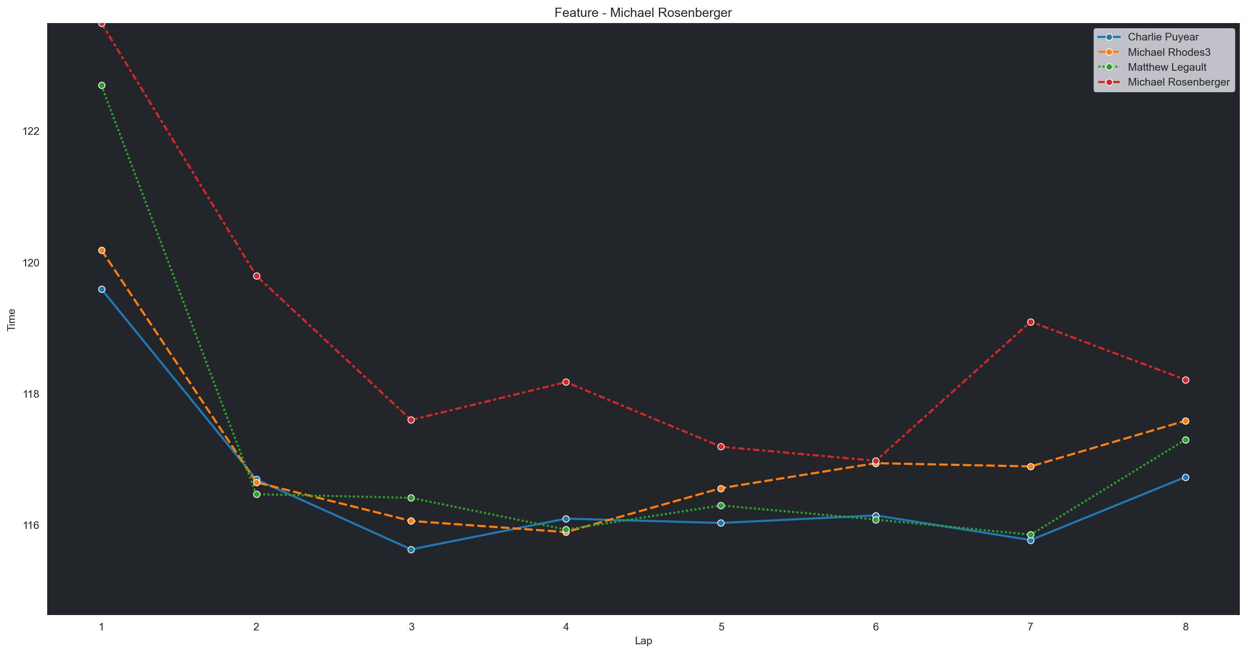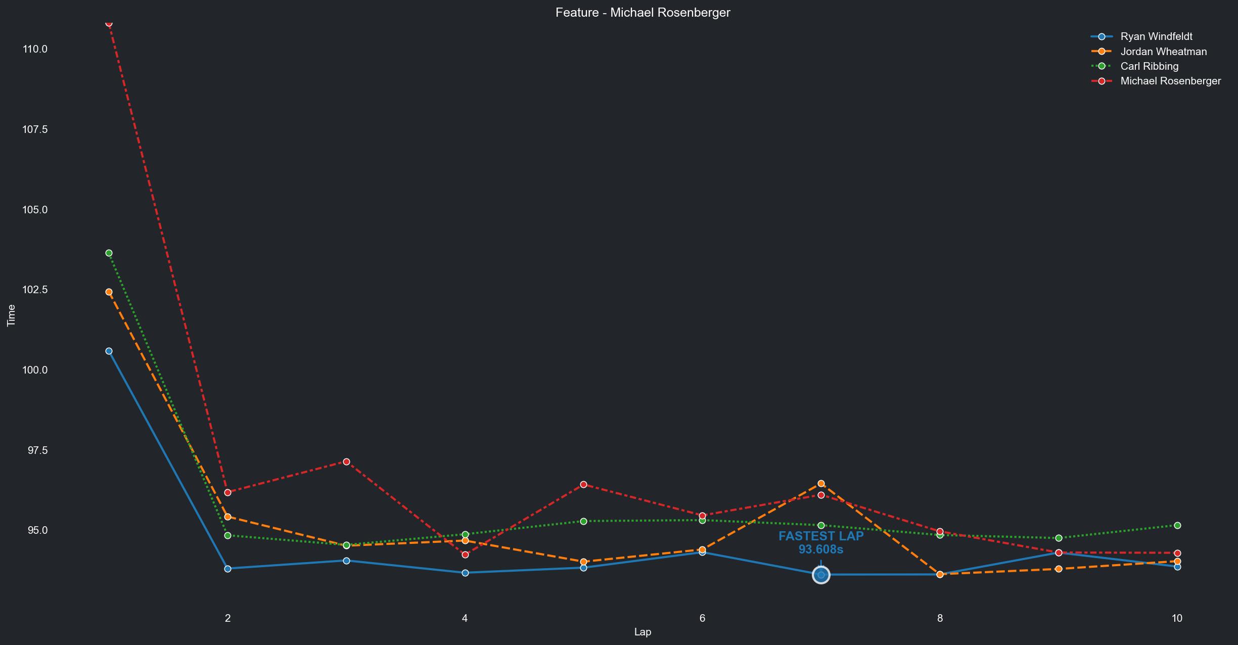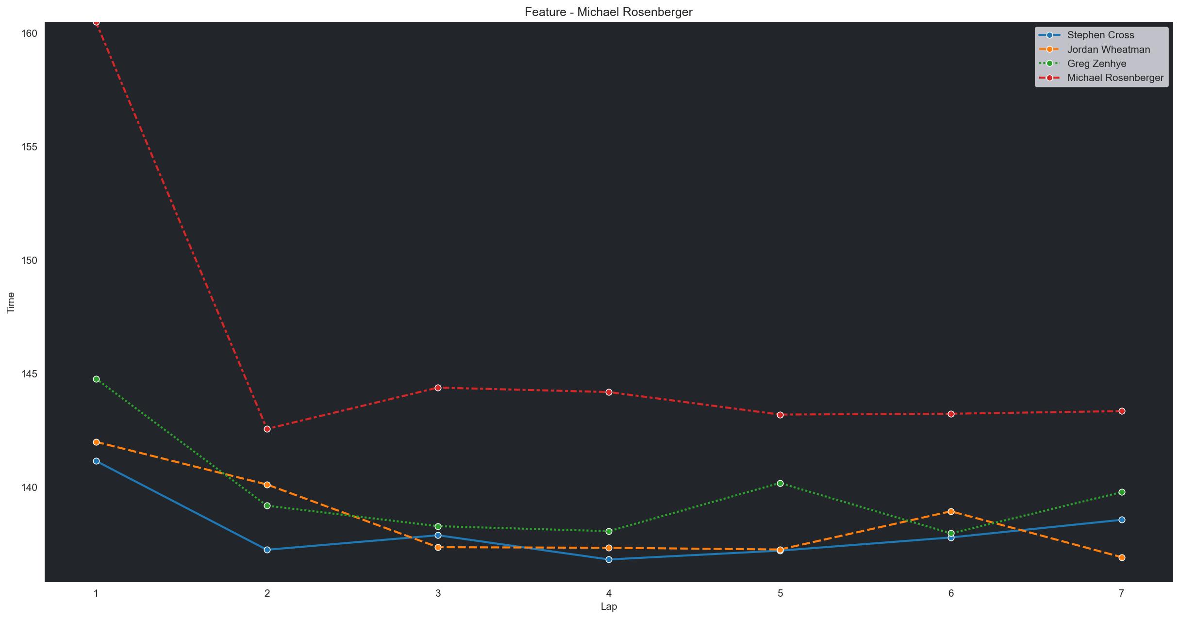 | Michael Rosenberger | 9 | 4 | 1:50.8115 | 1:36.1769 | 1:37.1382 | 1:34.2288 | 1:36.4167 | 1:35.4537 | 1:36.0964 | 1:34.9553 | 1:34.2962 | 1:34.2864 | 0 |