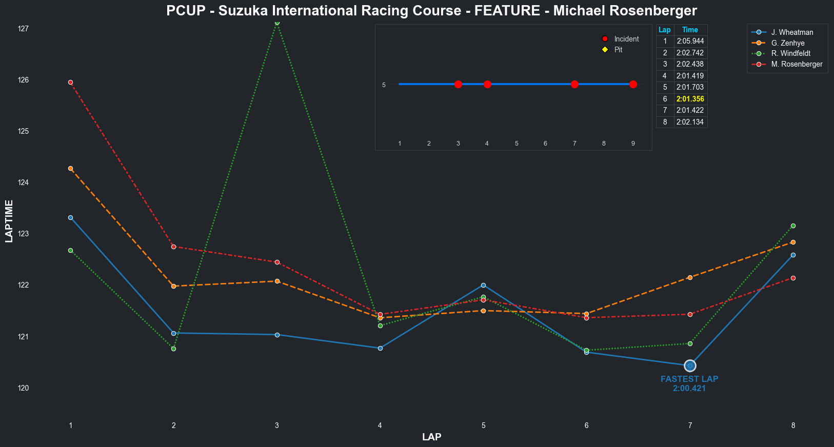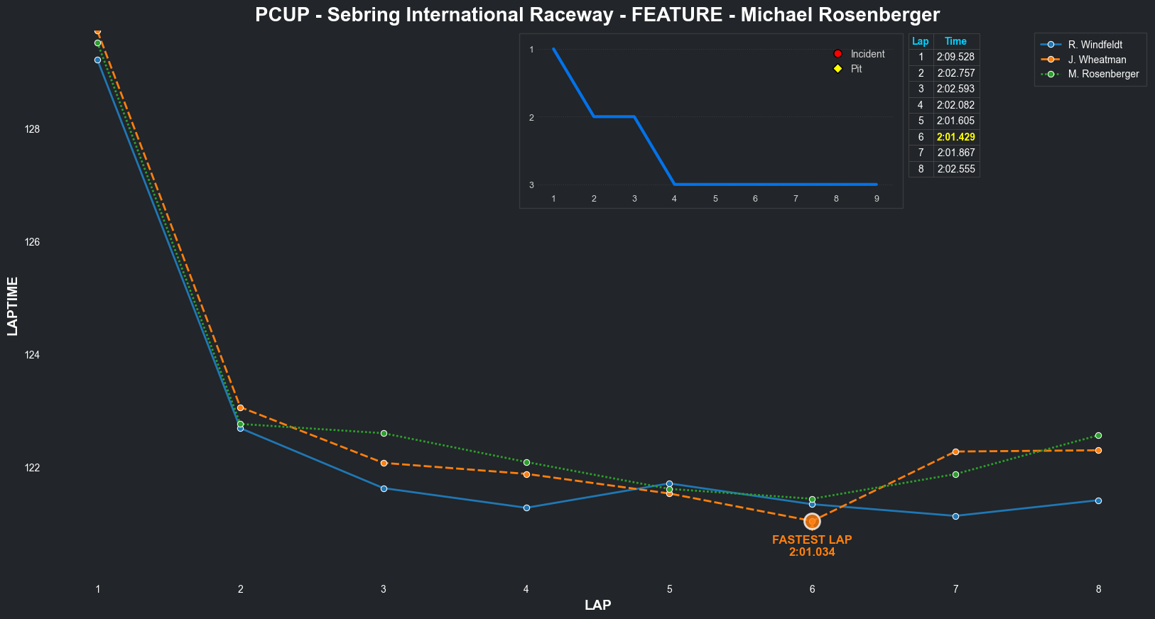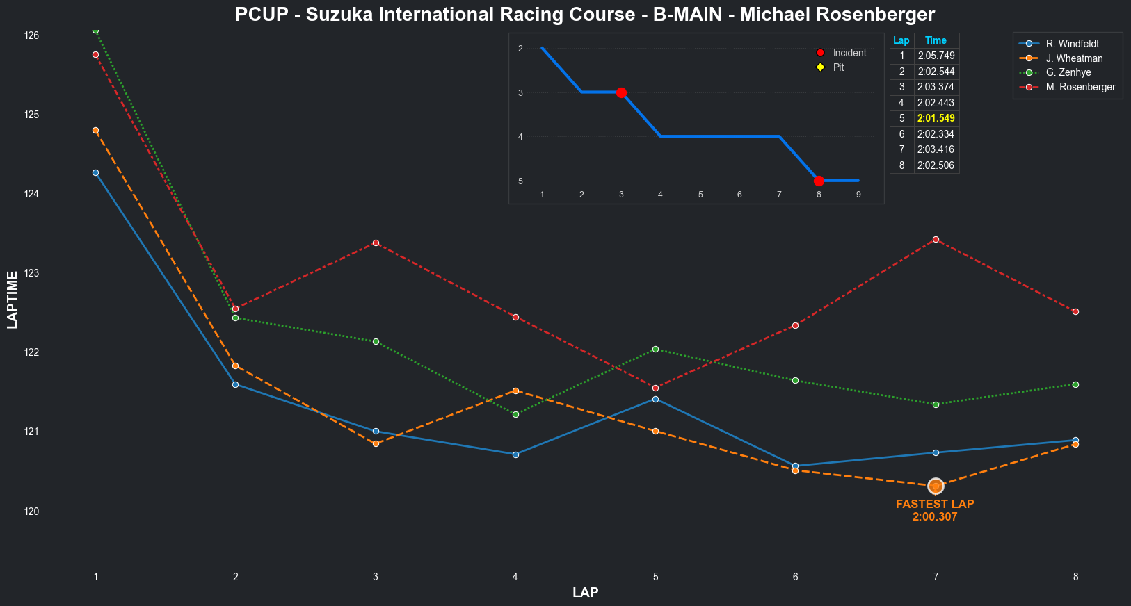 | Michael Rosenberger | 5 | 6 | 2:05.9442 | 2:02.7422 | 2:02.4382 | 2:01.4194 | 2:01.7034 | 2:01.3556 | 2:01.4221 | 2:02.1344 | 0 | 8 |