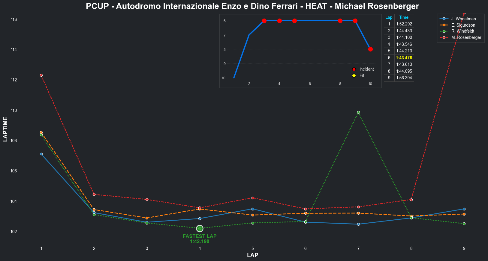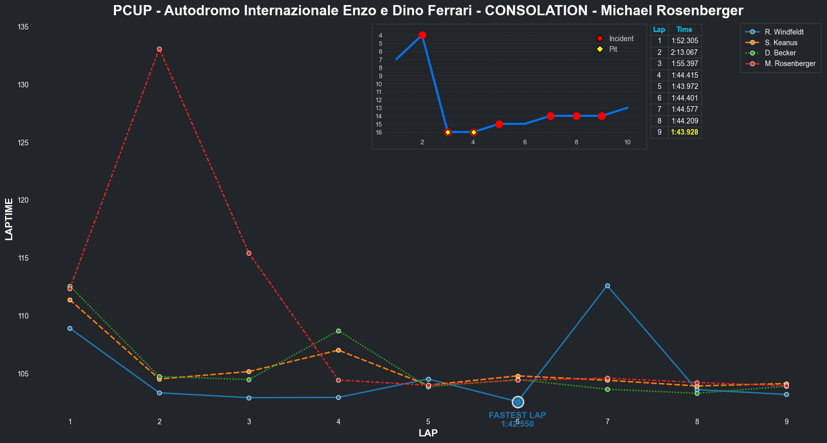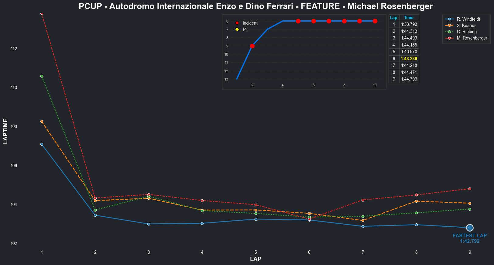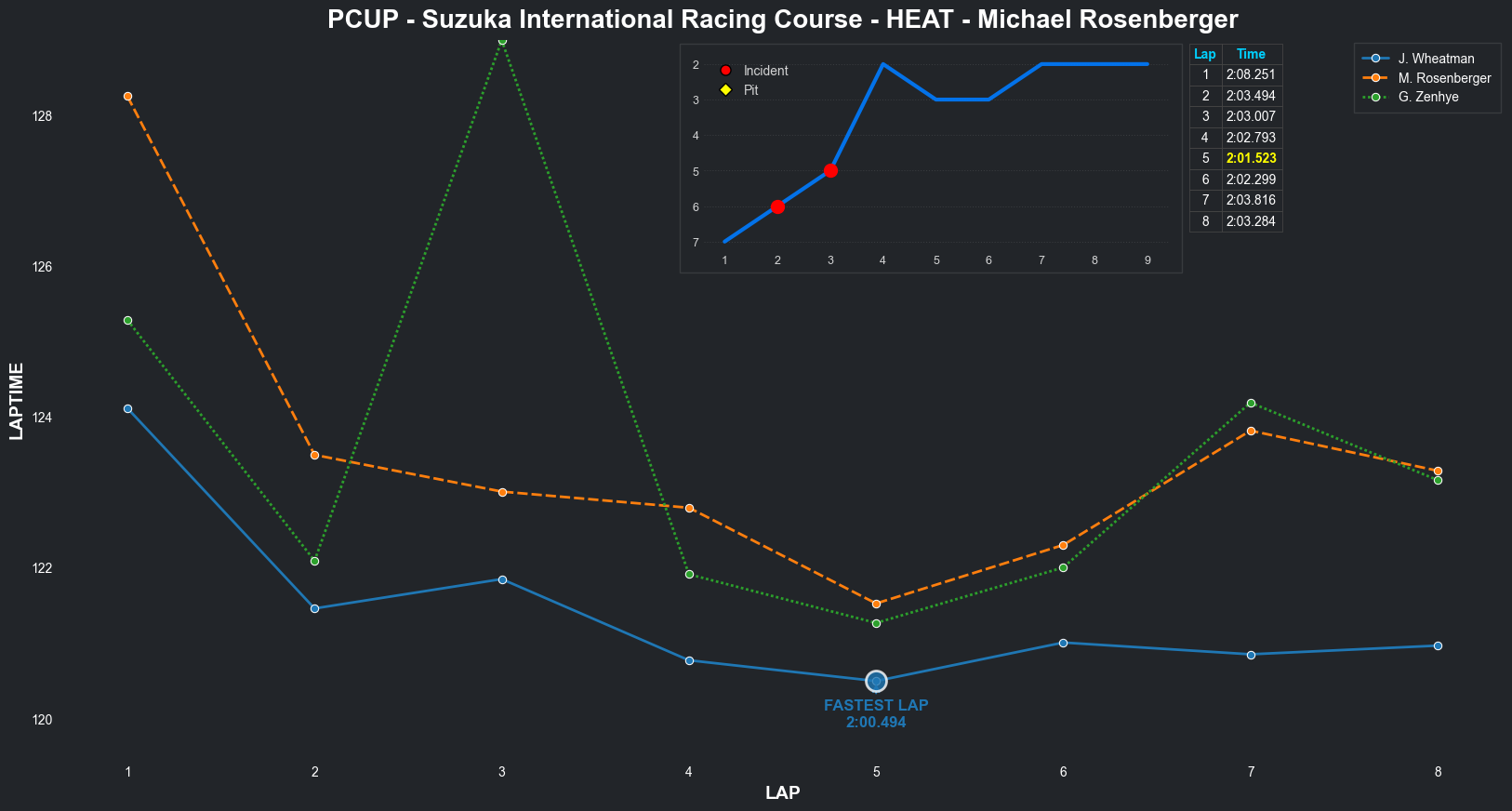 | Michael Rosenberger | 5 | 6 | 2:05.9442 | 2:02.7422 | 2:02.4382 | 2:01.4194 | 2:01.7034 | 2:01.3556 | 2:01.4221 | 2:02.1344 | 0 | 8 |