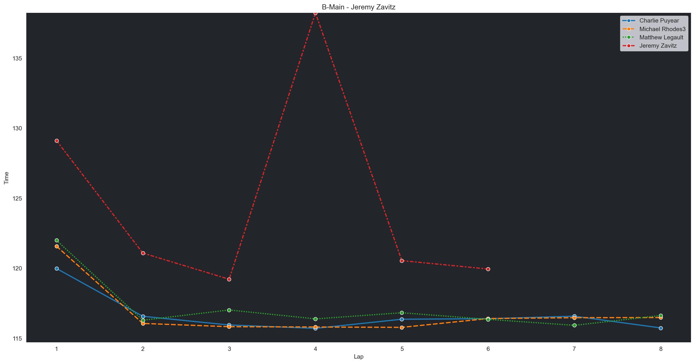 | Jeremy Zavitz | 10 | 6 | 1:49.9594 | 1:36.7229 | 1:37.9629 | 1:35.3267 | 1:35.8935 | 1:36.4348 | 1:35.4462 | 1:35.7551 | 1:35.2363 | 1:35.0155 | 0 |