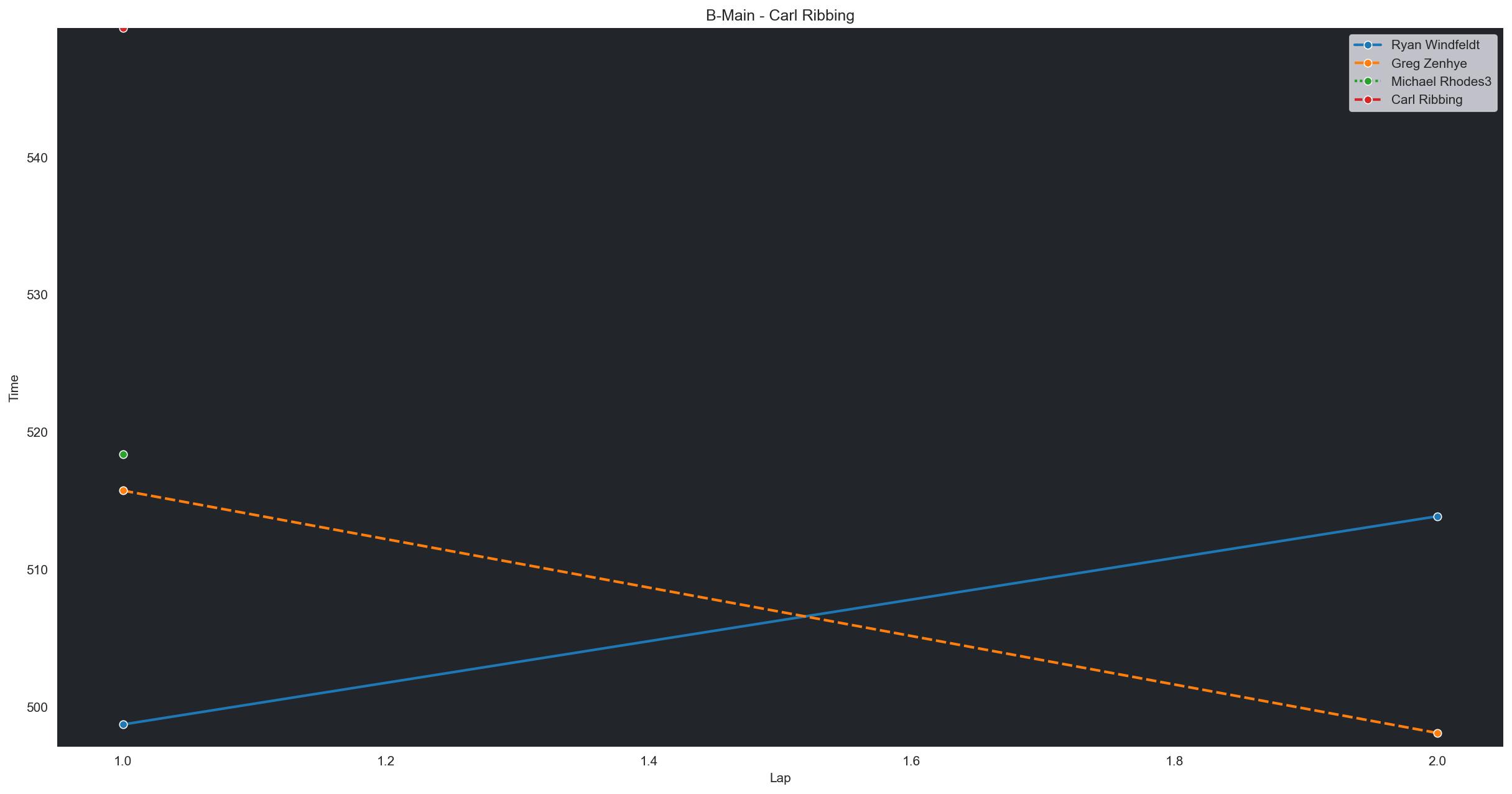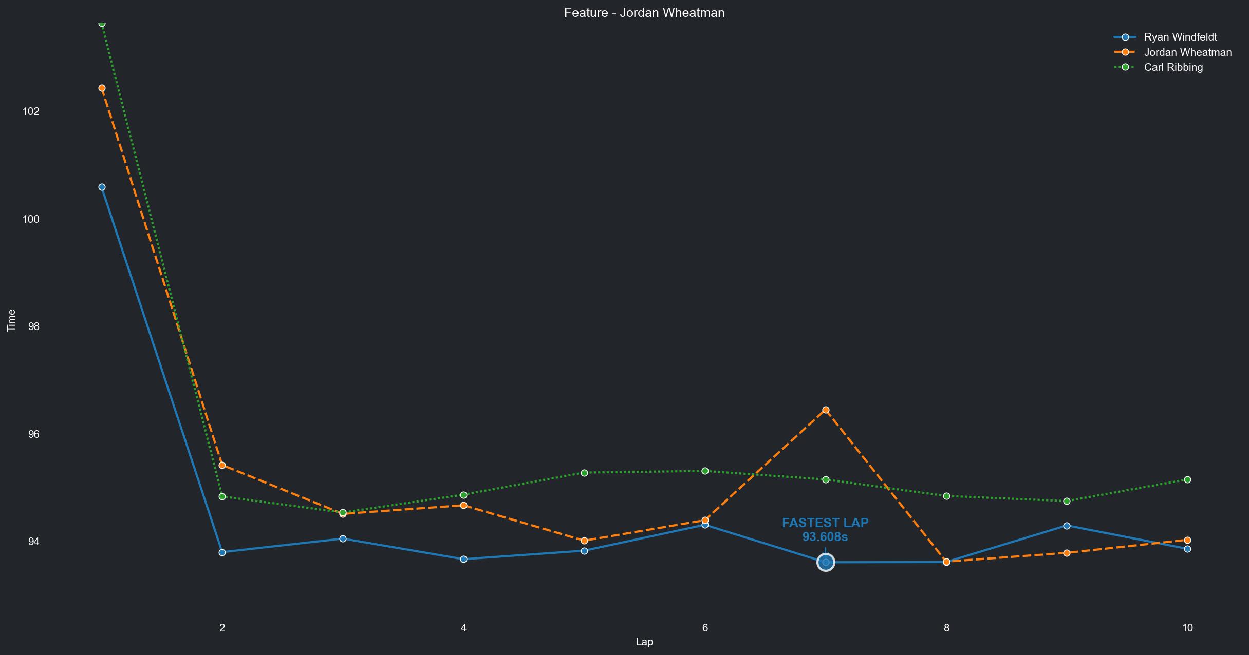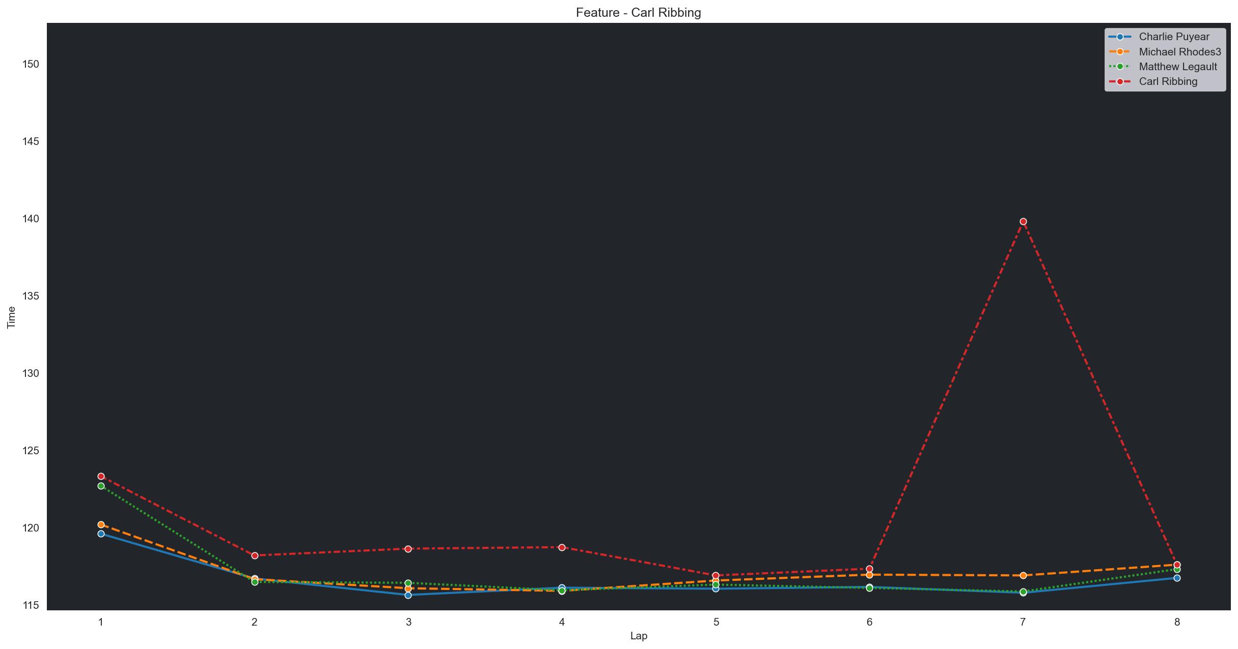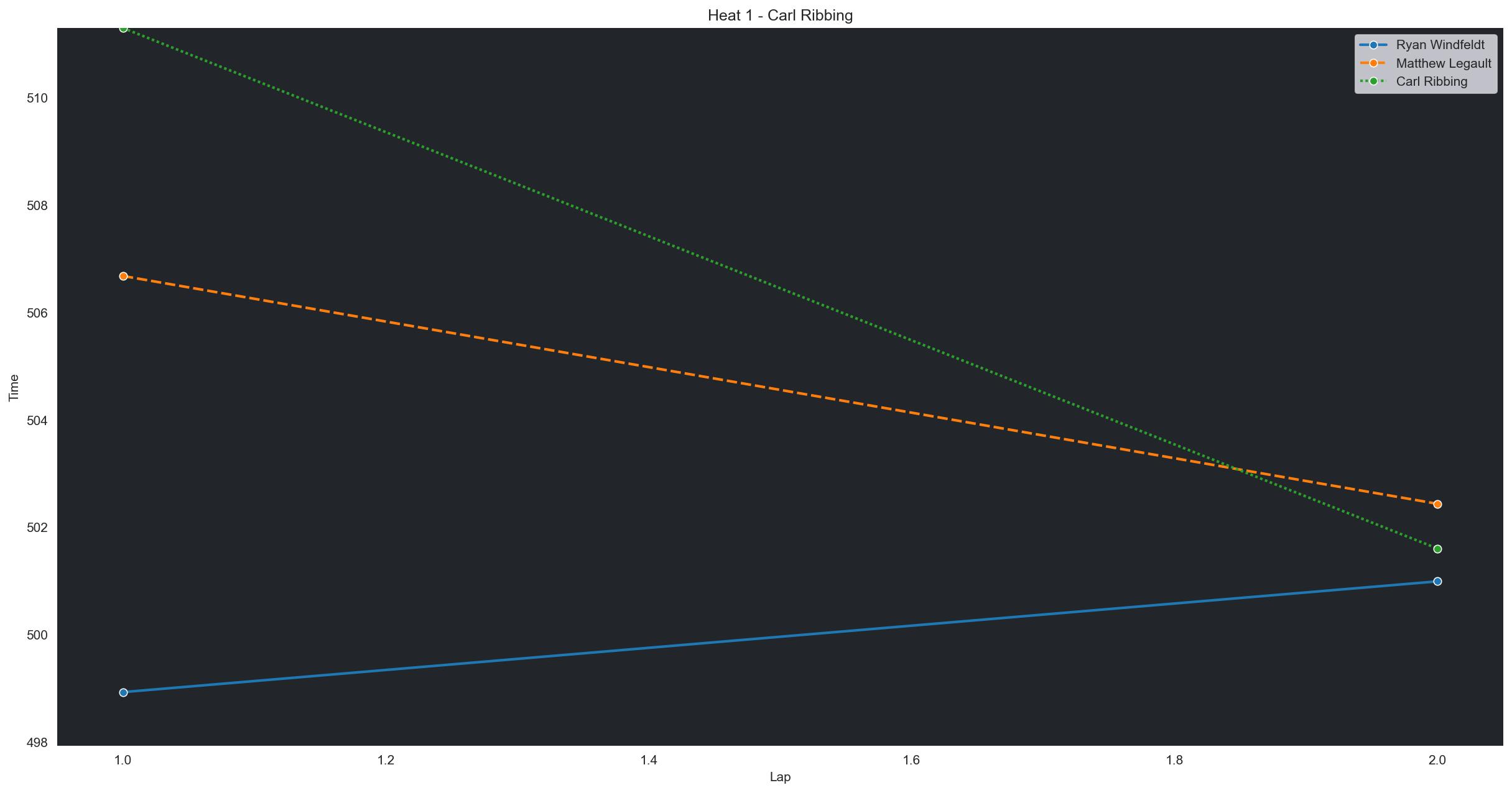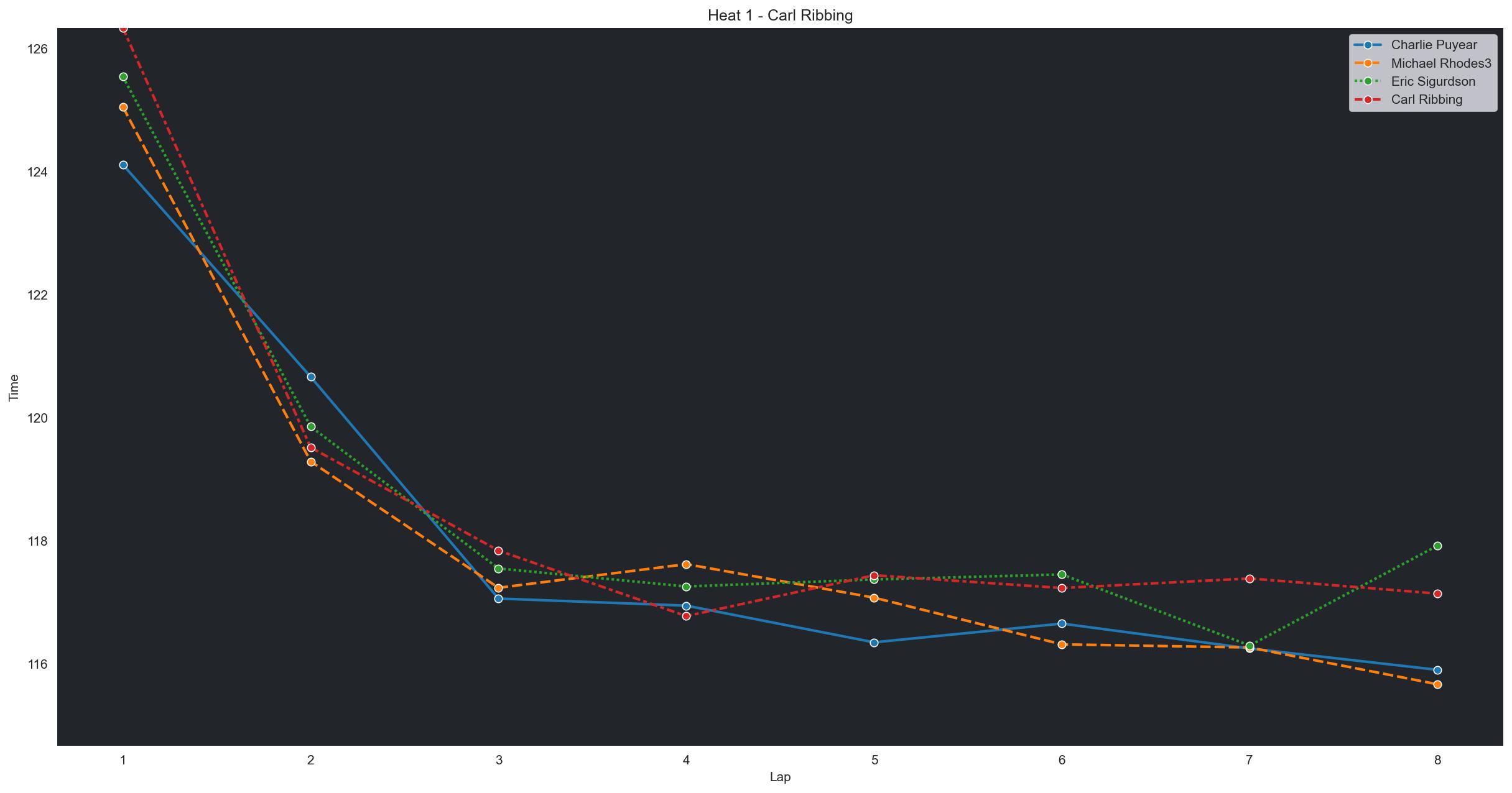 | Carl Ribbing | 3 | 9 | 1:43.6351 | 1:34.8329 | 1:34.5336 | 1:34.8659 | 1:35.2765 | 1:35.3061 | 1:35.1487 | 1:34.8417 | 1:34.7472 | 1:35.1496 | 0 |