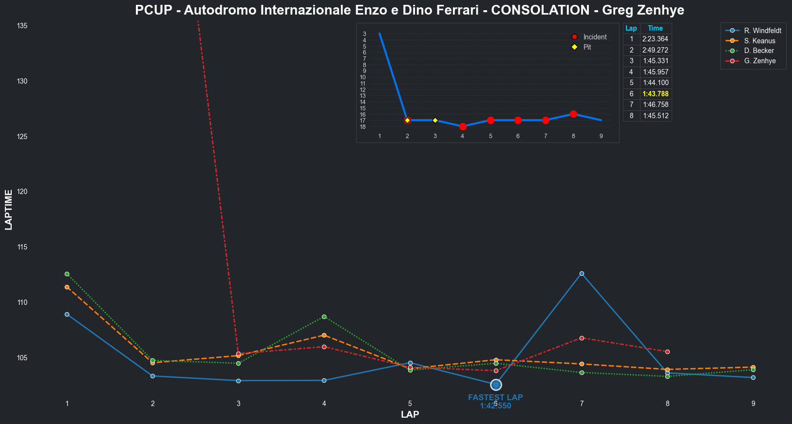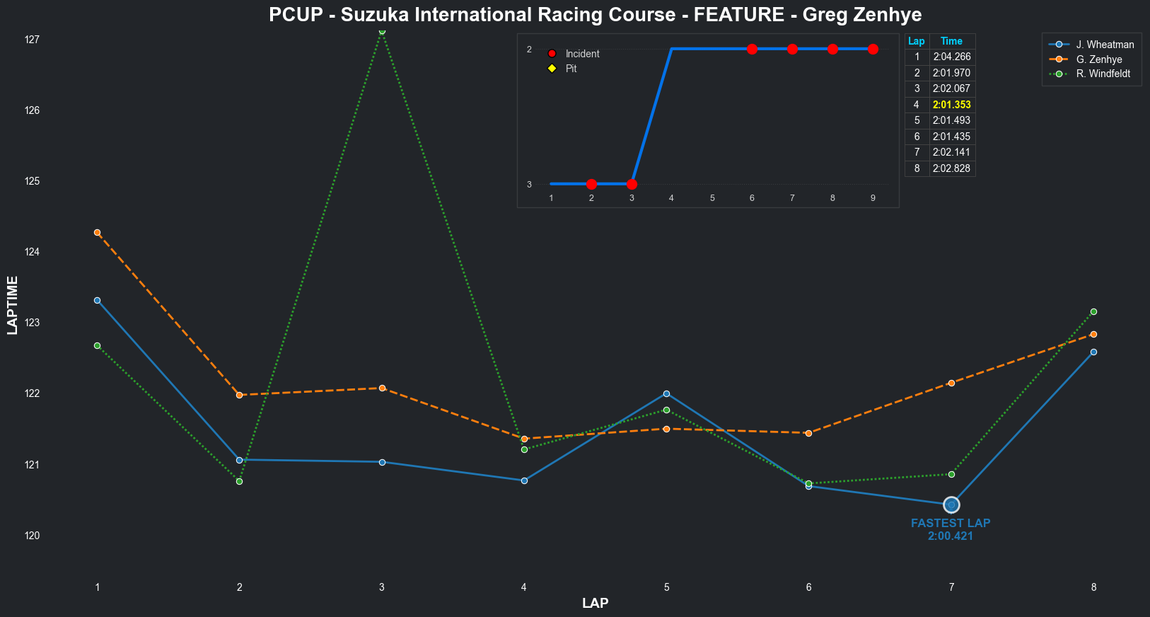 | Greg Zenhye | 2 | 6 | 2:04.2662 | 2:01.9703 | 2:02.0669 | 2:01.3530 | 2:01.4935 | 2:01.4352 | 2:02.1415 | 2:02.8277 | 0 | 8 |