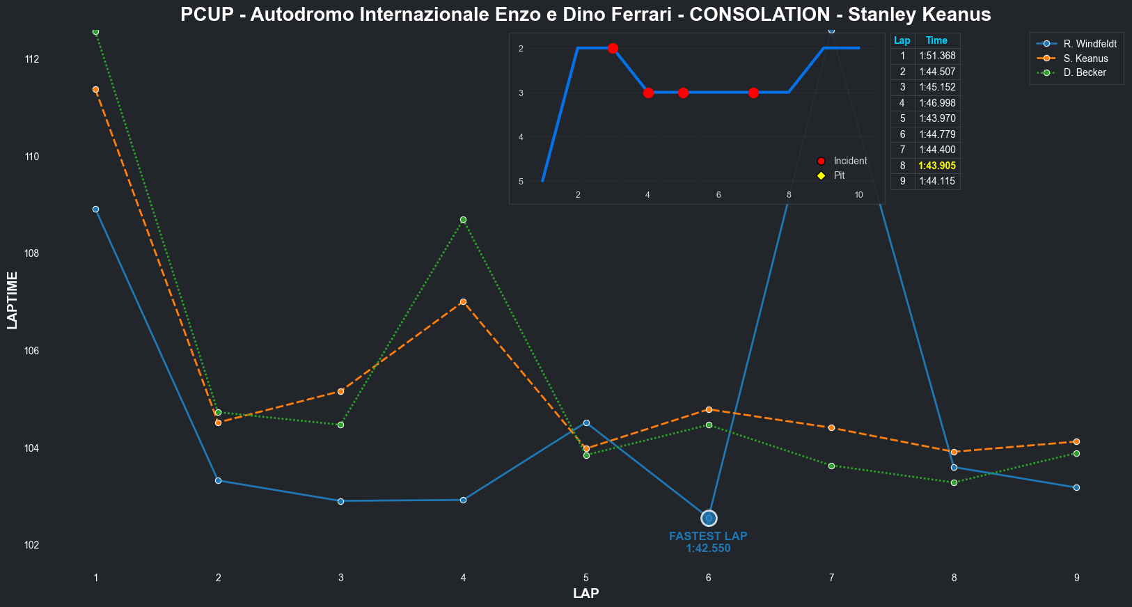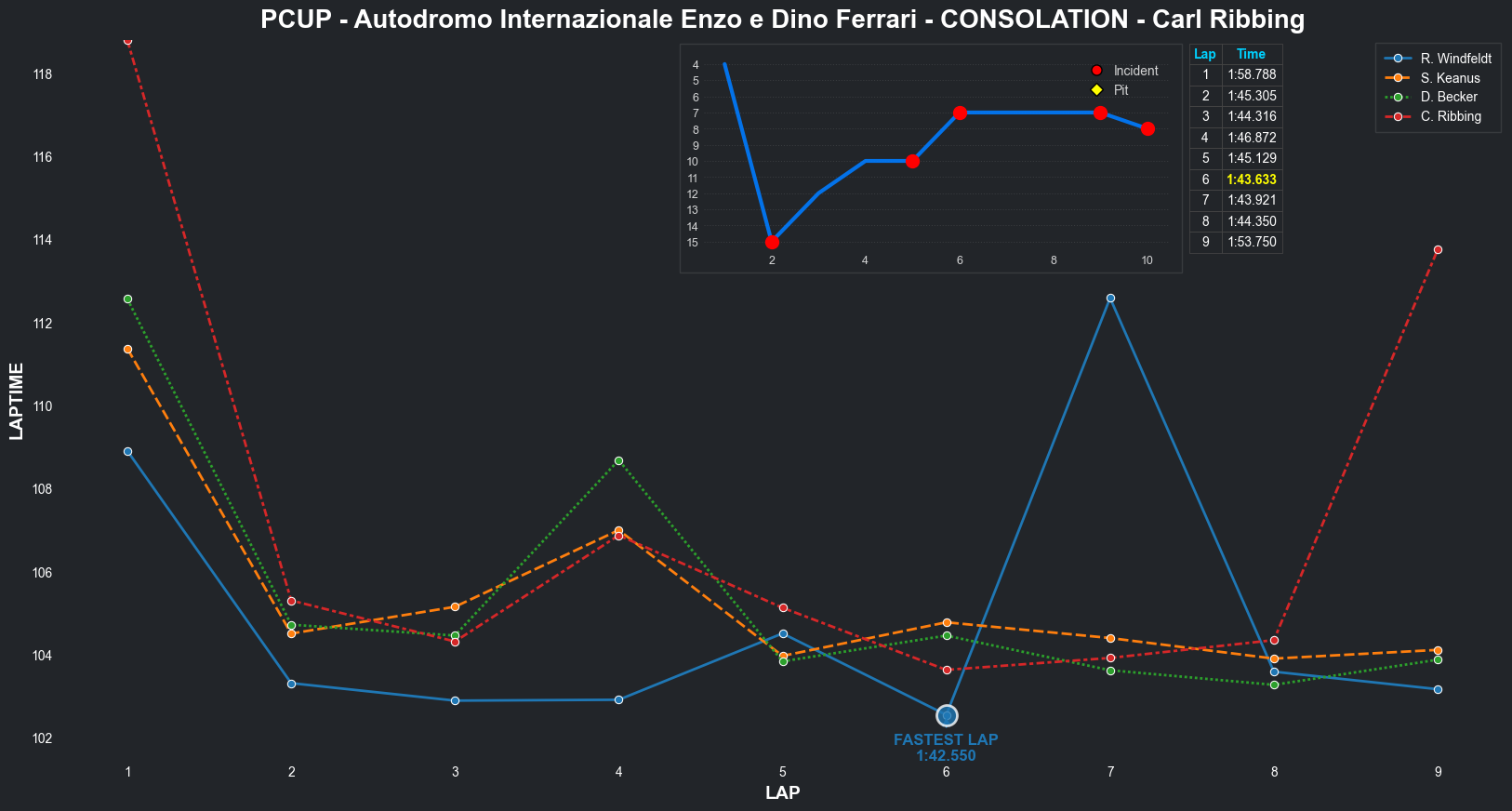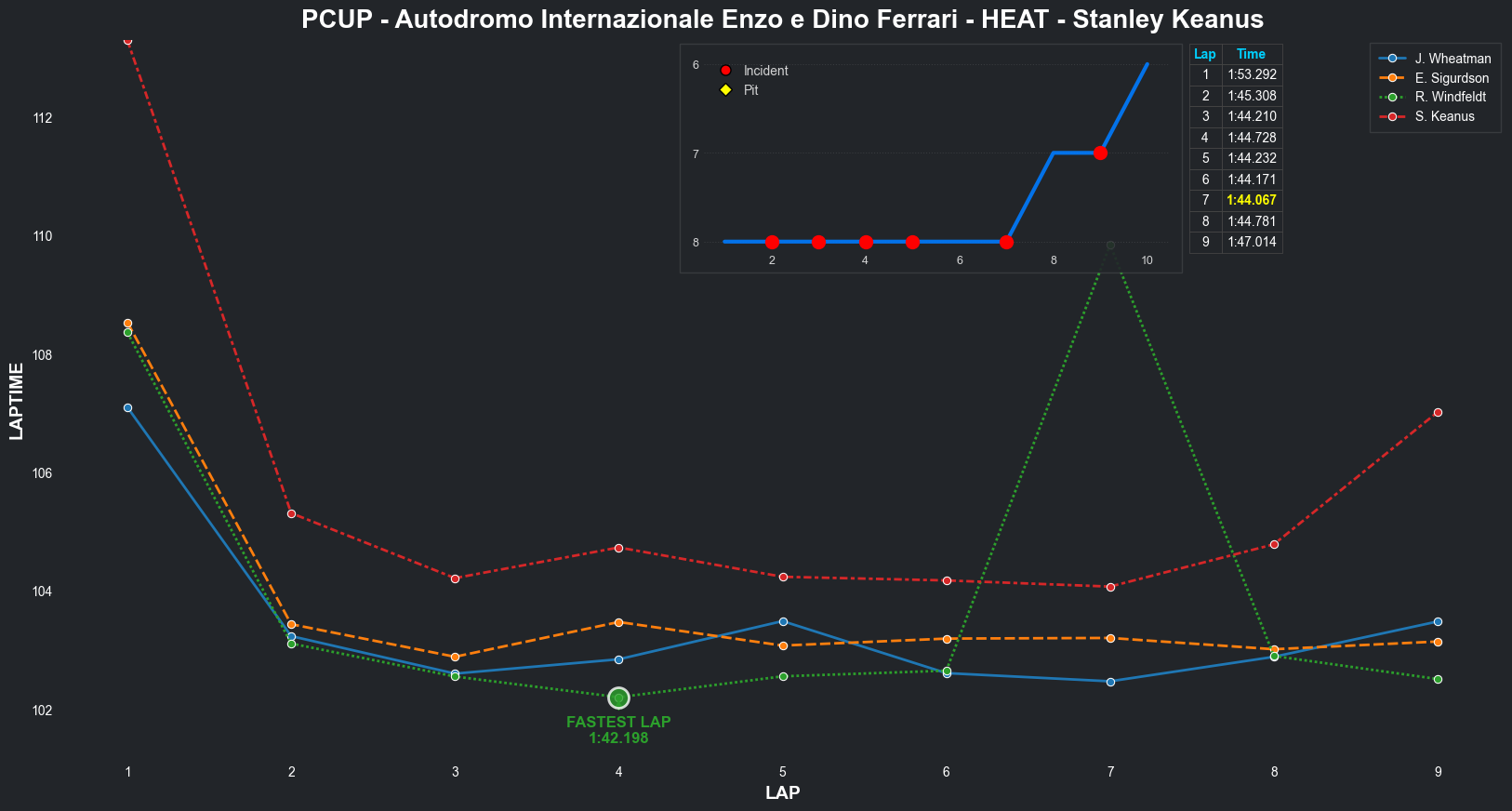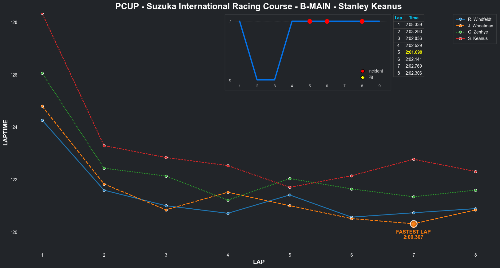 | Stanley Keanus | 6 | 6 | 2:07.7582 | 2:02.1944 | 2:01.7558 | 2:01.7146 | 2:01.3147 | 2:01.6647 | 2:02.3101 | 2:01.0219 | 0 | 8 |