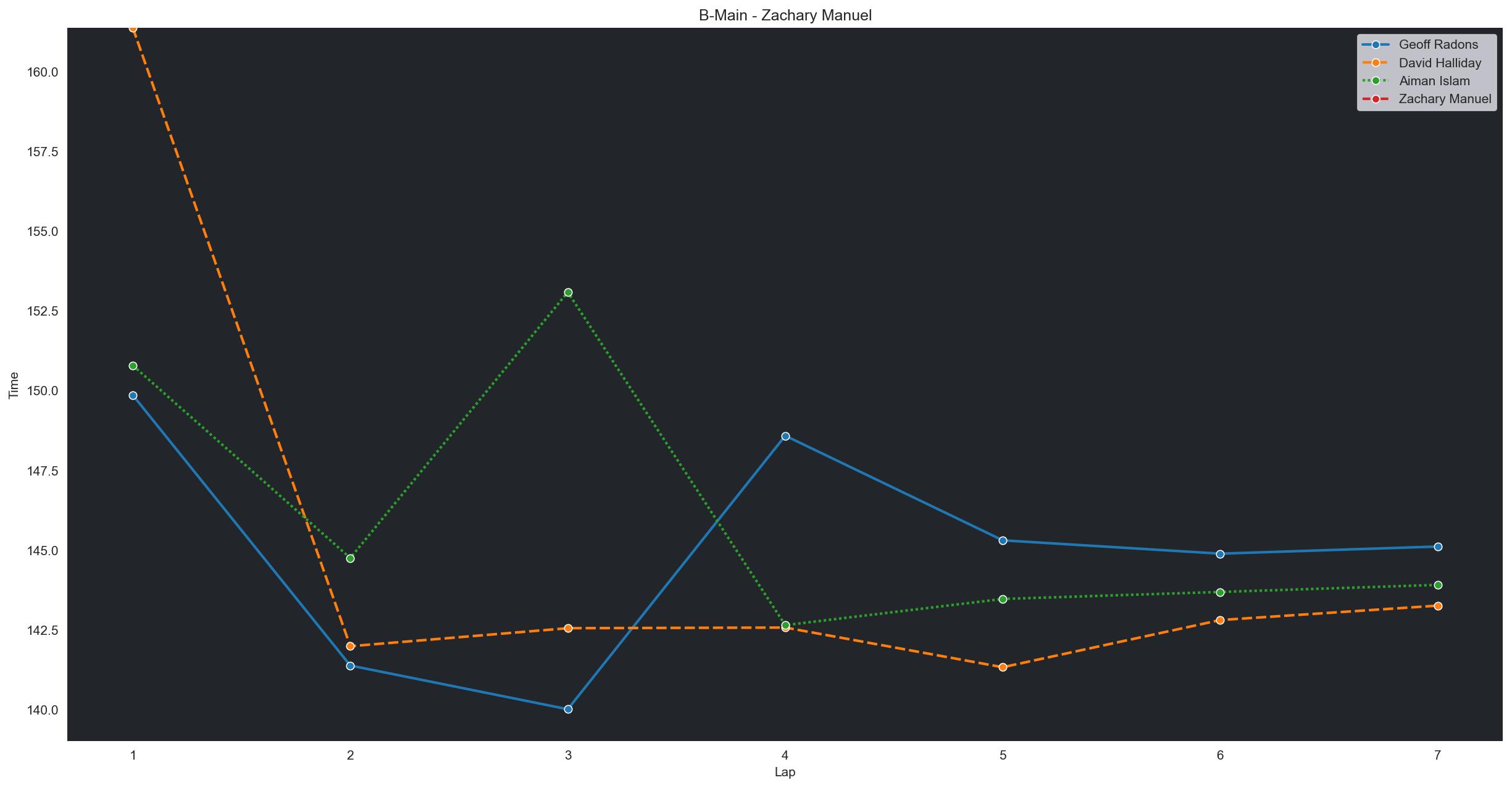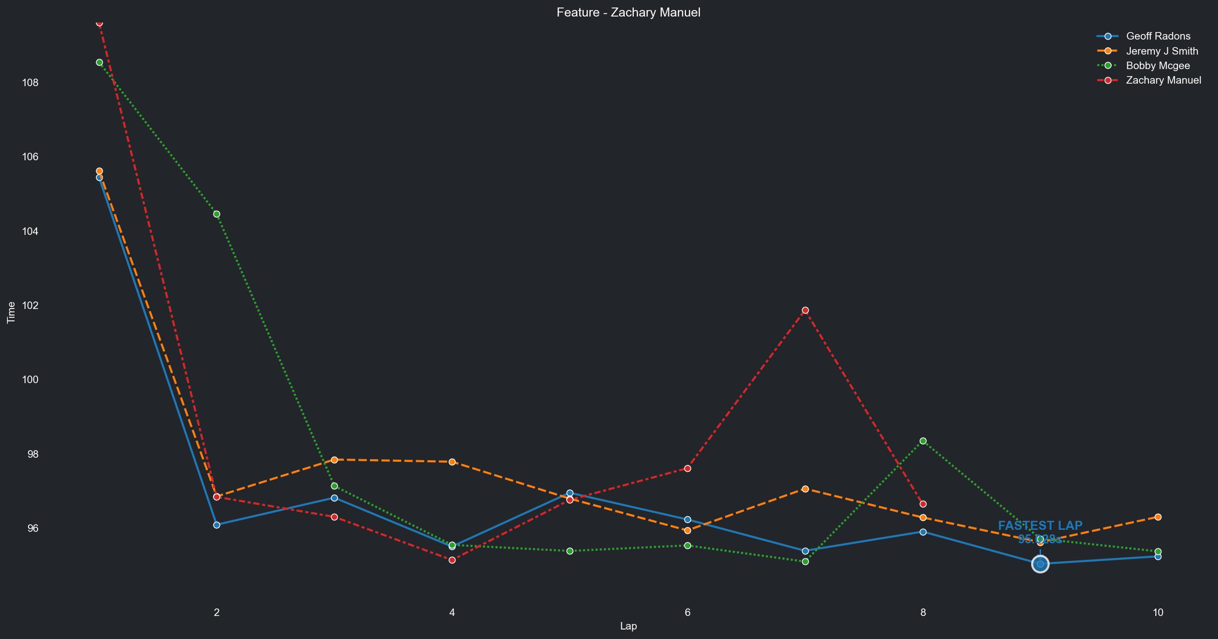 | Zachary Manuel | 12 | 3 | 2:19.9011 | 2:03.1639 | 2:01.7530 | 1:59.7003 | 2:00.0666 | 2:01.2284 | 2:00.1189 | 2:02.3088 | 0 |