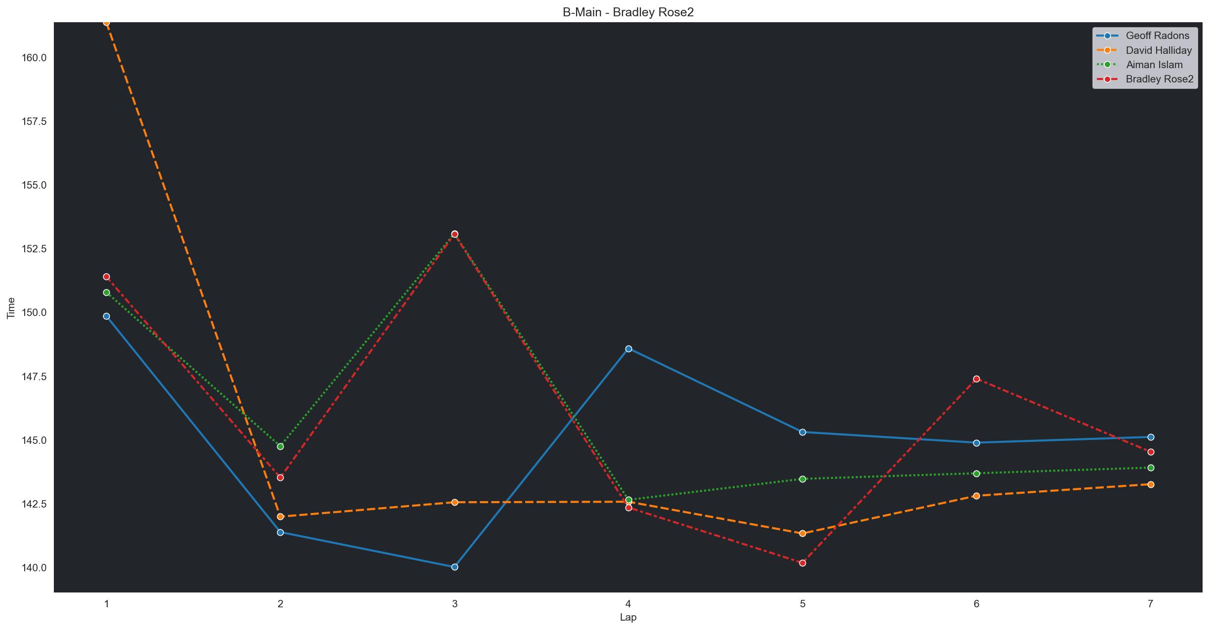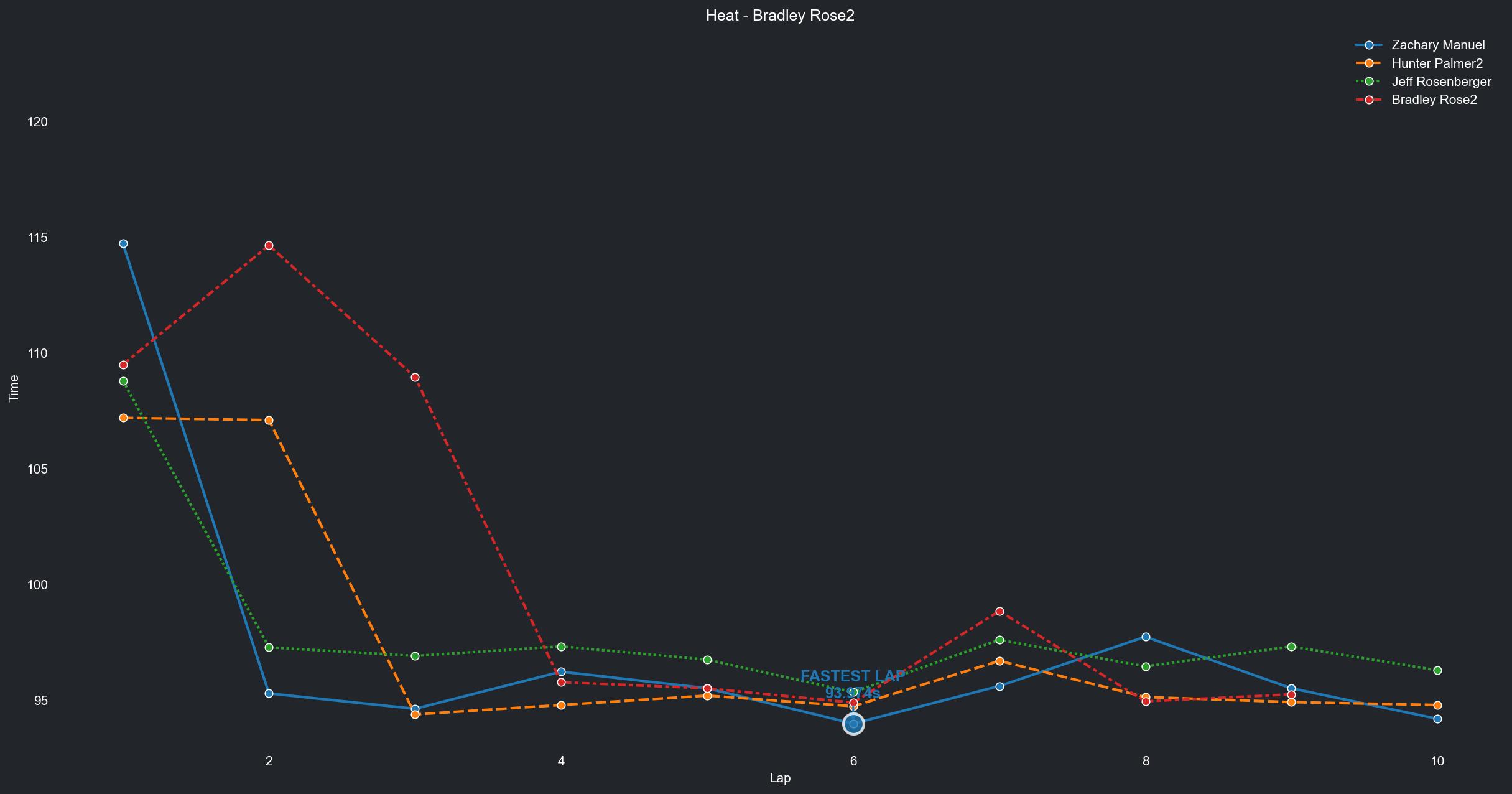 | Bradley Rose2 | 10 | 4 | 2:08.2234 | 2:00.4424 | 1:58.7548 | 2:03.5113 | 1:59.7882 | 2:04.7645 | 1:59.6391 | 1:59.1074 | 0 |