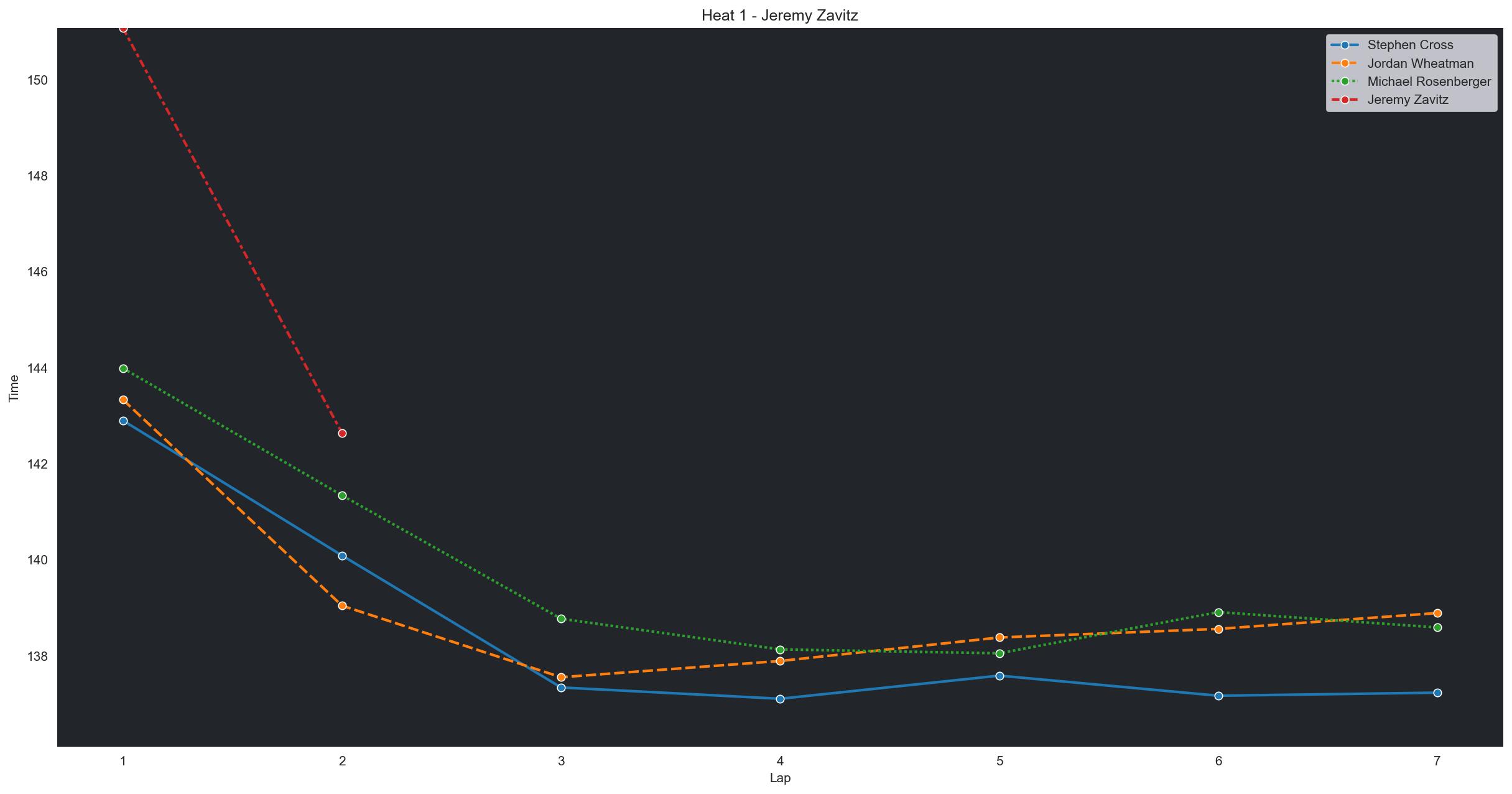 | Michael Rosenberger | 6 | 6 | 2:05.8146 | 2:00.9264 | 1:57.4332 | 1:57.5541 | 1:58.2497 | 1:57.3246 | 1:57.9086 | 1:57.2739 | 0 |