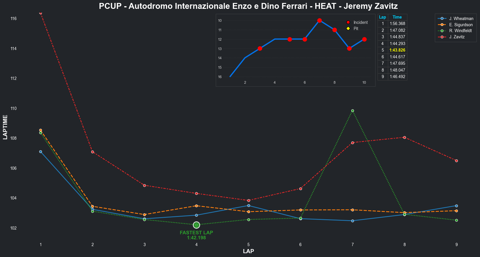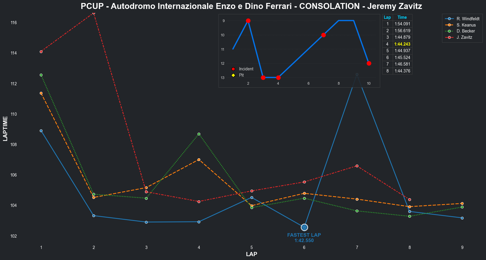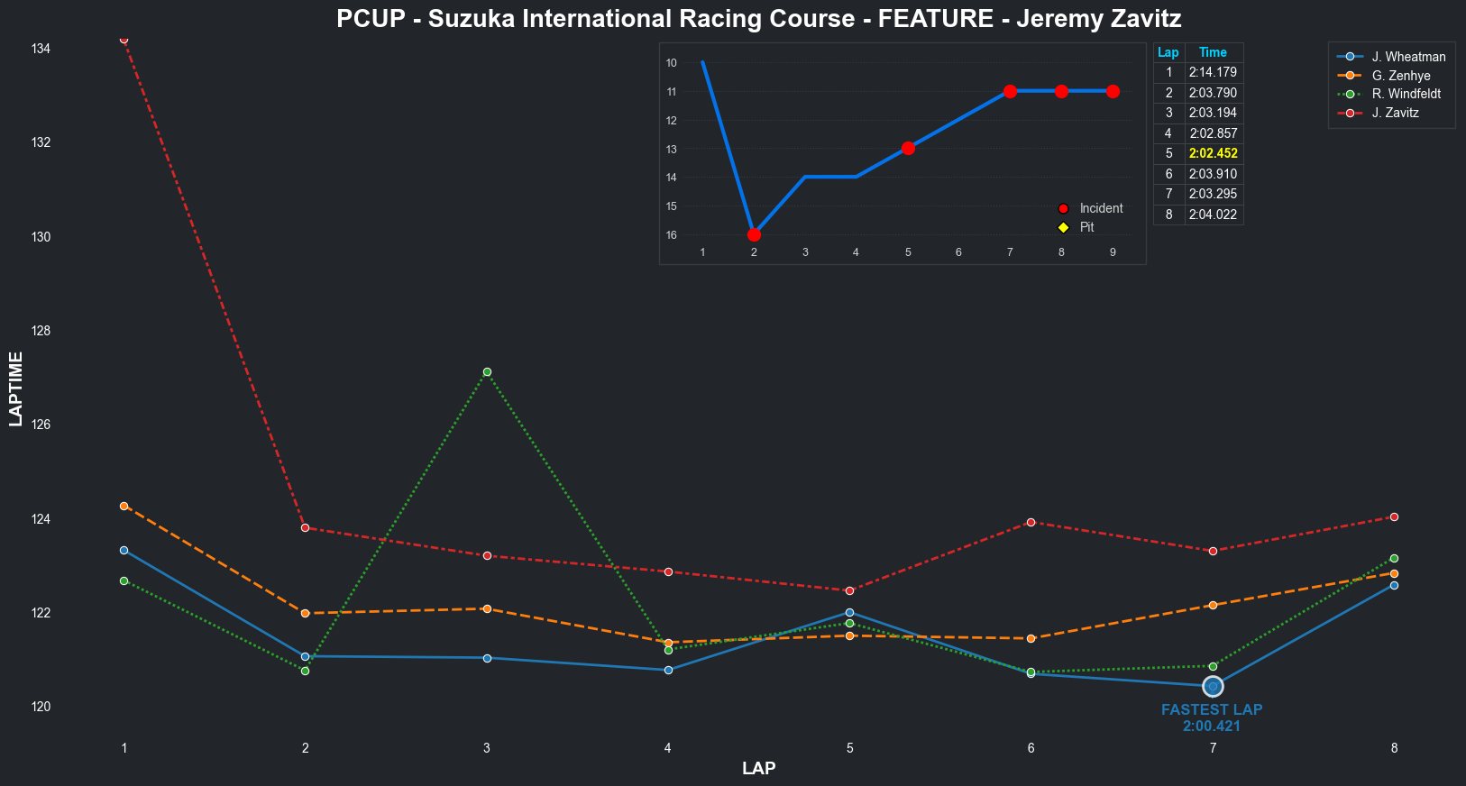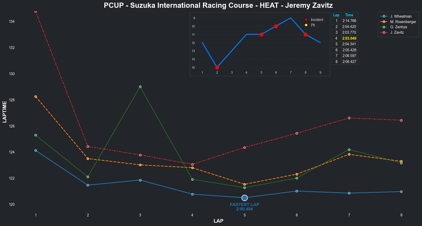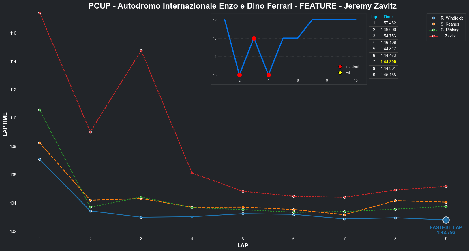 | Jeremy Zavitz | 11 | 4 | 2:14.1795 | 2:03.7895 | 2:03.1940 | 2:02.8573 | 2:02.4517 | 2:03.9104 | 2:03.2953 | 2:04.0223 | 0 | 8 |