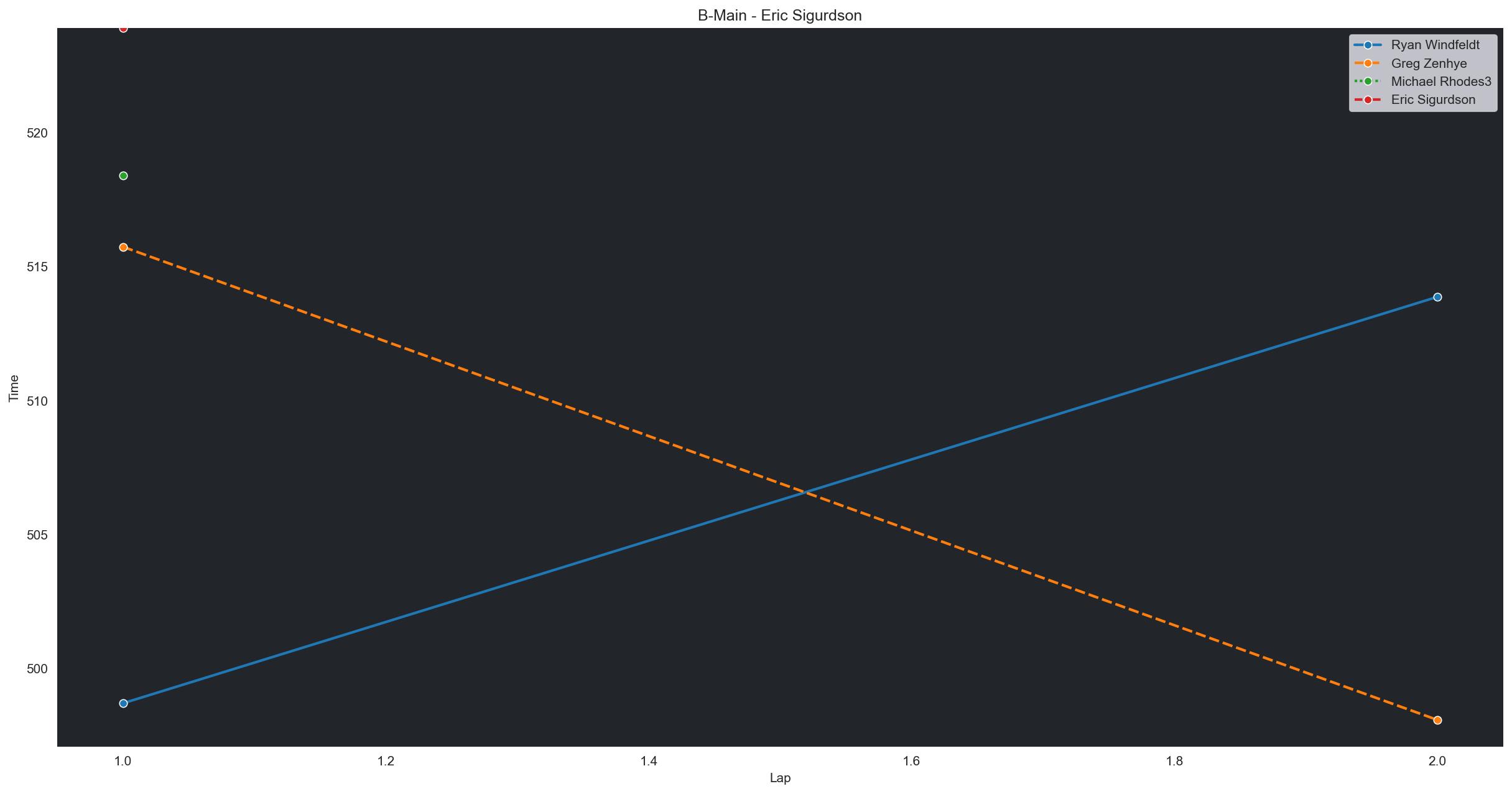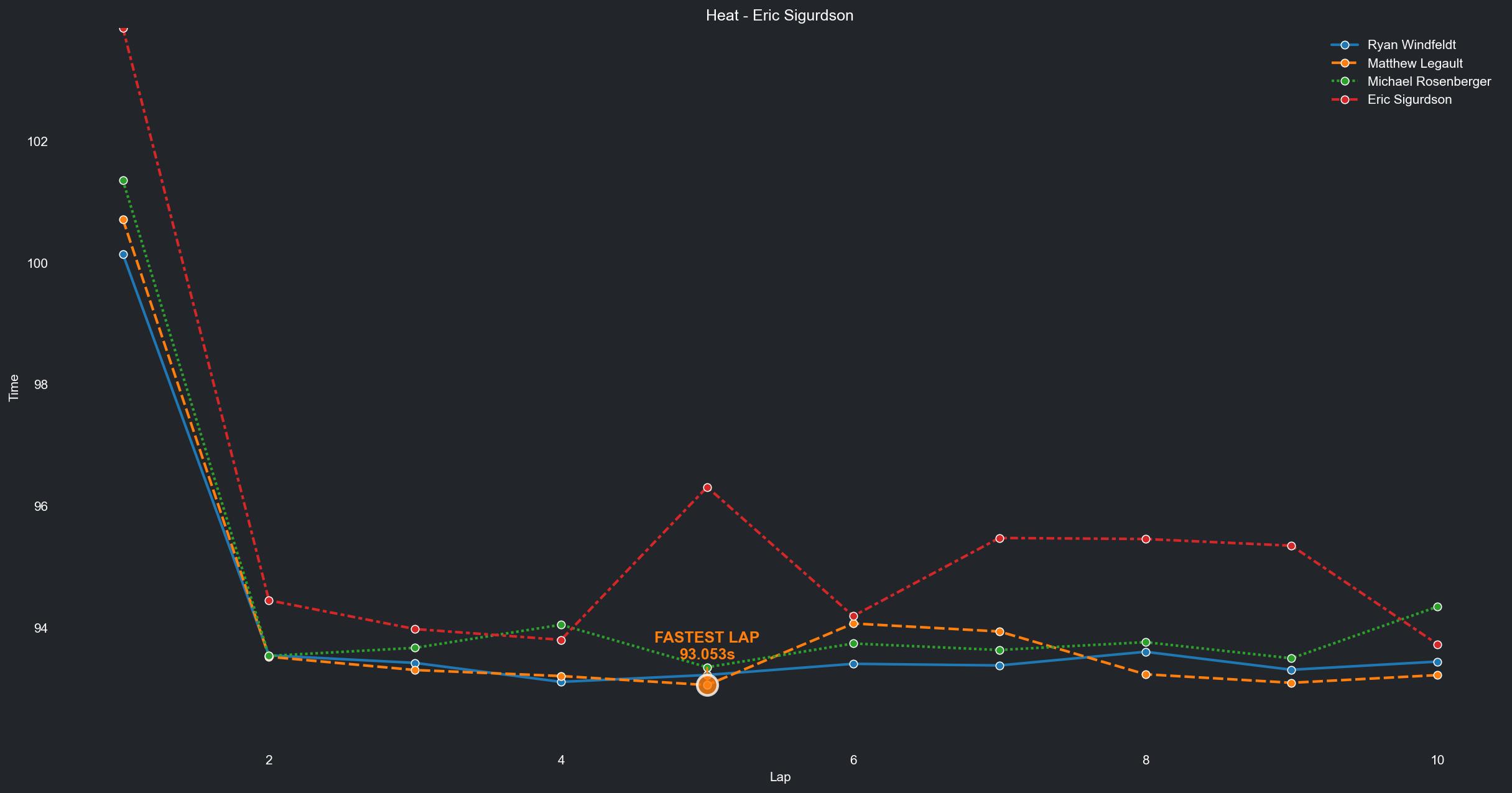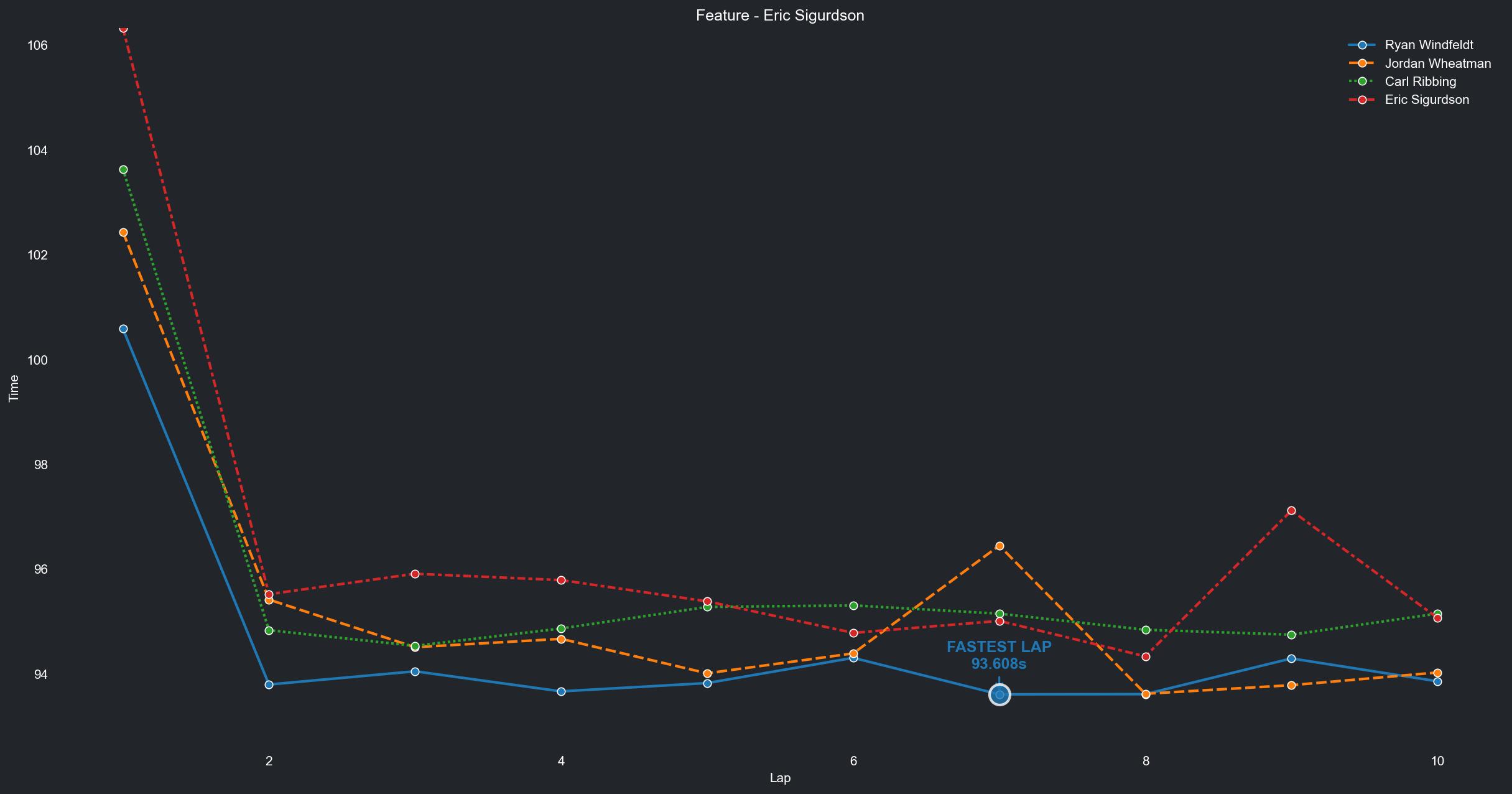 | Eric Sigurdson | 6 | 4 | 1:46.3261 | 1:35.5203 | 1:35.9105 | 1:35.7892 | 1:35.3837 | 1:34.7818 | 1:35.0108 | 1:34.3336 | 1:37.1167 | 1:35.0676 | 0 |