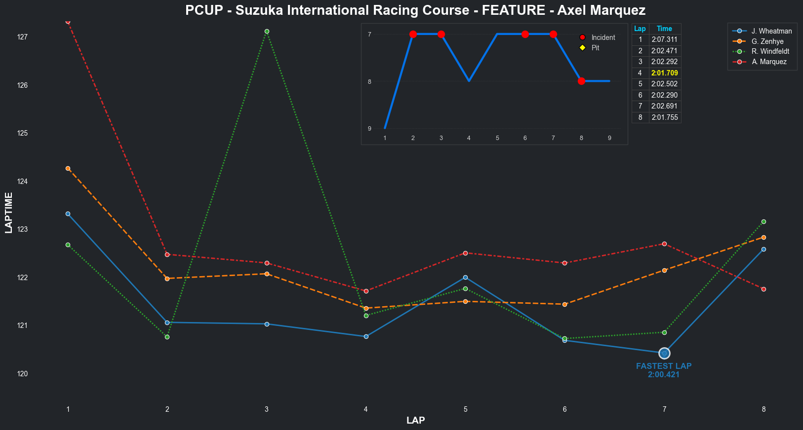 | Axel Marquez | 8 | 7 | 2:07.3115 | 2:02.4707 | 2:02.2920 | 2:01.7092 | 2:02.5017 | 2:02.2905 | 2:02.6906 | 2:01.7553 | 0 | 8 |