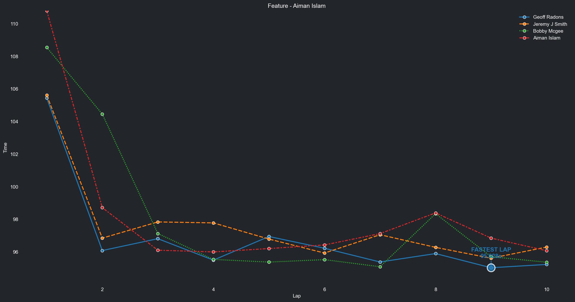 | Aiman Islam | 14 | 6 | 1:50.7965 | 1:38.7150 | 1:36.1036 | 1:35.9975 | 1:36.2054 | 1:36.4263 | 1:37.1216 | 1:38.3920 | 1:36.8448 | 1:36.0715 | 0 |