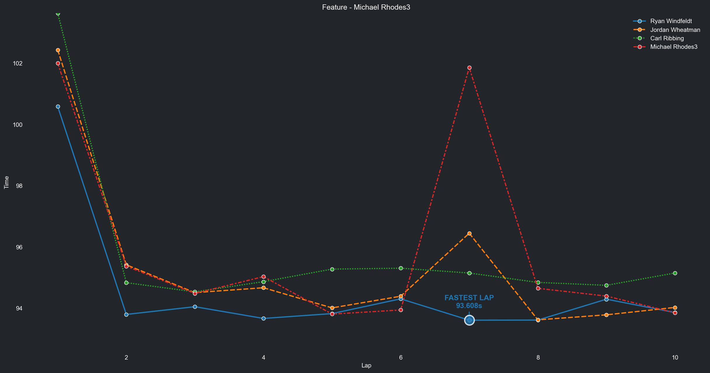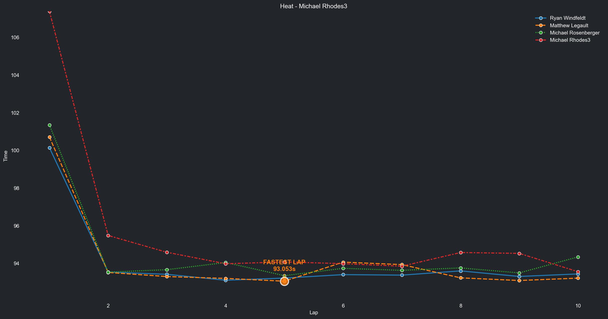 | Michael Rhodes3 | 4 | 6 | 1:41.9993 | 1:35.3728 | 1:34.4827 | 1:35.0310 | 1:33.8078 | 1:33.9418 | 1:41.8599 | 1:34.6489 | 1:34.3954 | 1:33.8510 | 0 |